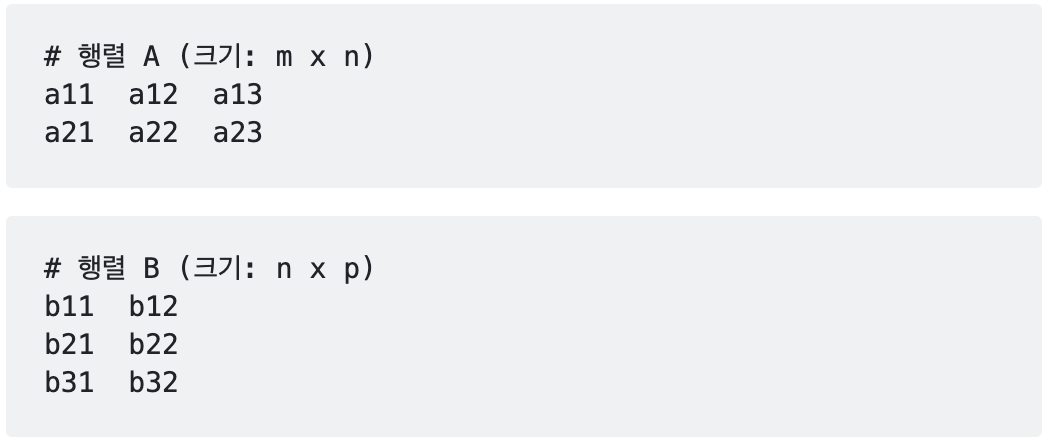 - 결과 행렬 C는 m x p 크기를 가지게 된다.