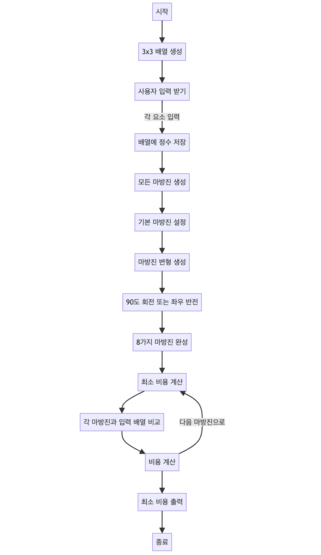 // 입력받은 배열을 마방진으로 만들기 위한 최소 비용 계산